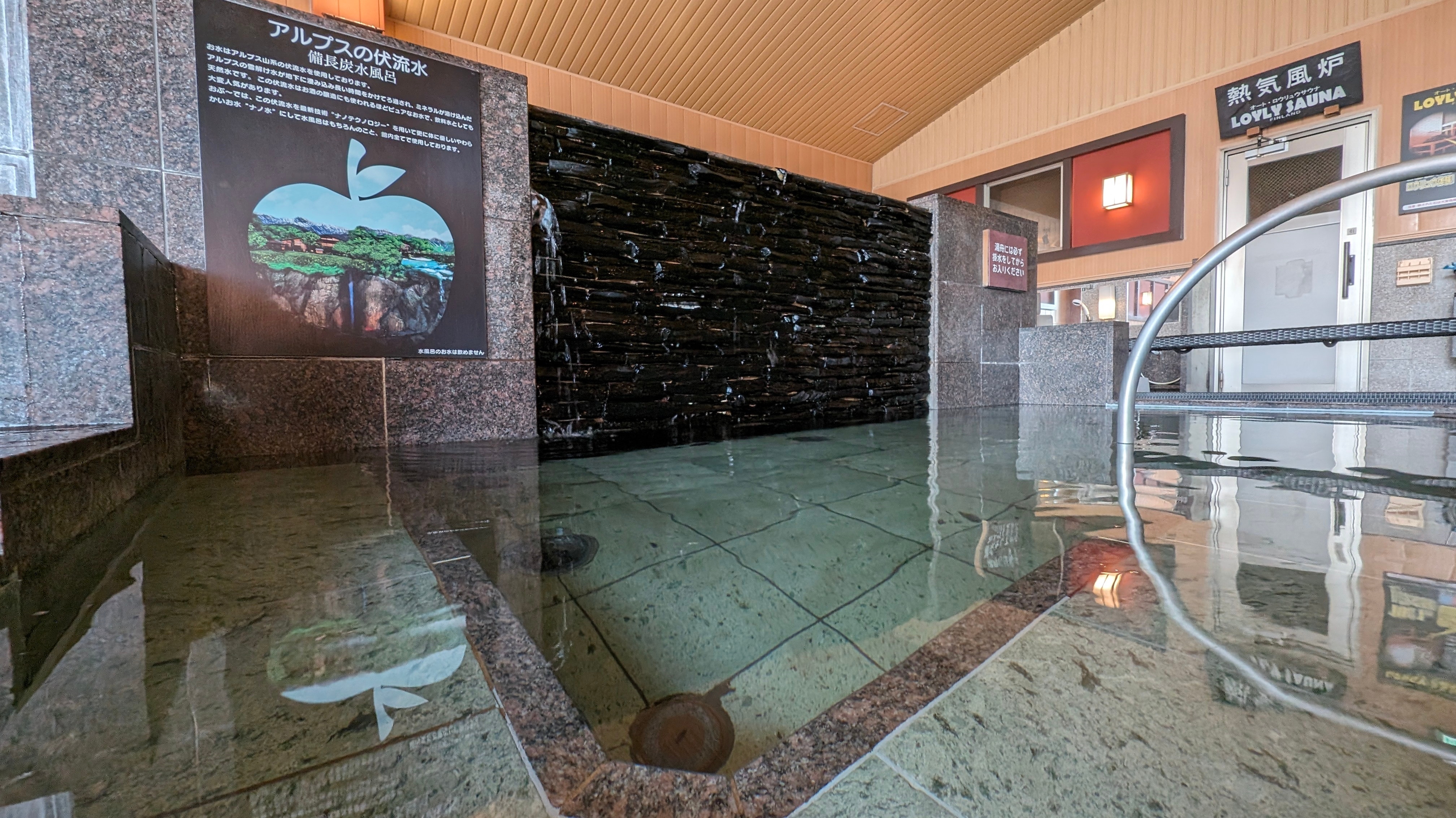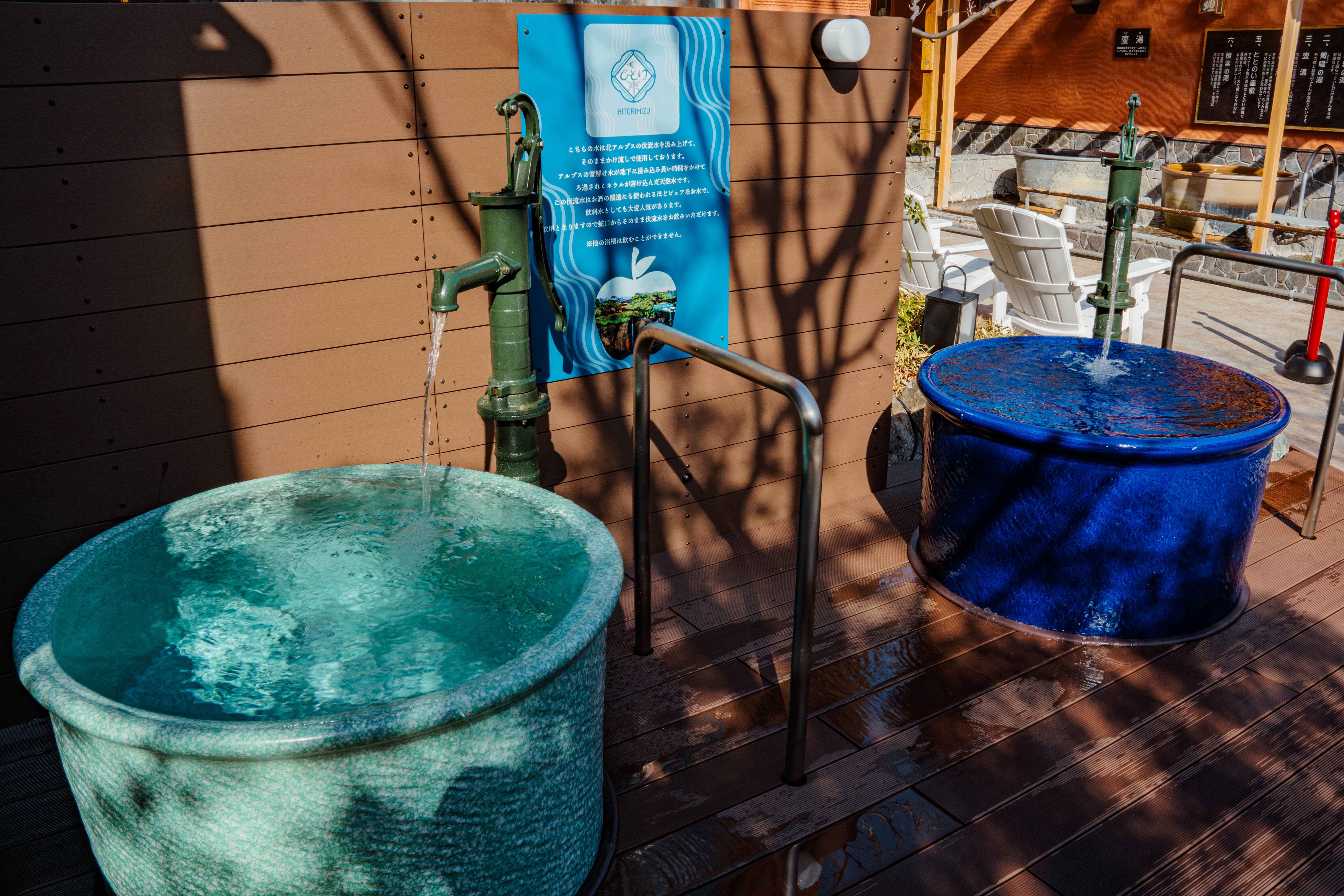 また、サウナ後のクールダウンに欠かせない水風呂はアルプスの伏流水をナノテクノロジーを用いてさらに体に優しいお水(ナノ水)にしてきめ細かな水風呂を体験できる「備長炭水風呂」、そんなナノ水を常時かけ流しにし直接飲むことが出来る男性限定の「ひとり水」は必見!ととのいスペースも充実しており植栽を眺めながら存分にととのうことができます。