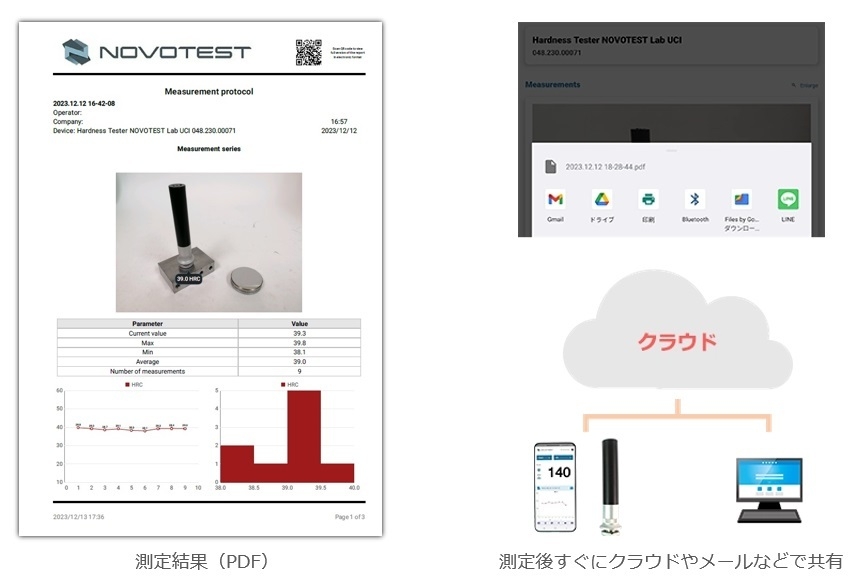 ・測定結果(PDF・CSV)はメールやクラウドで簡単に共有