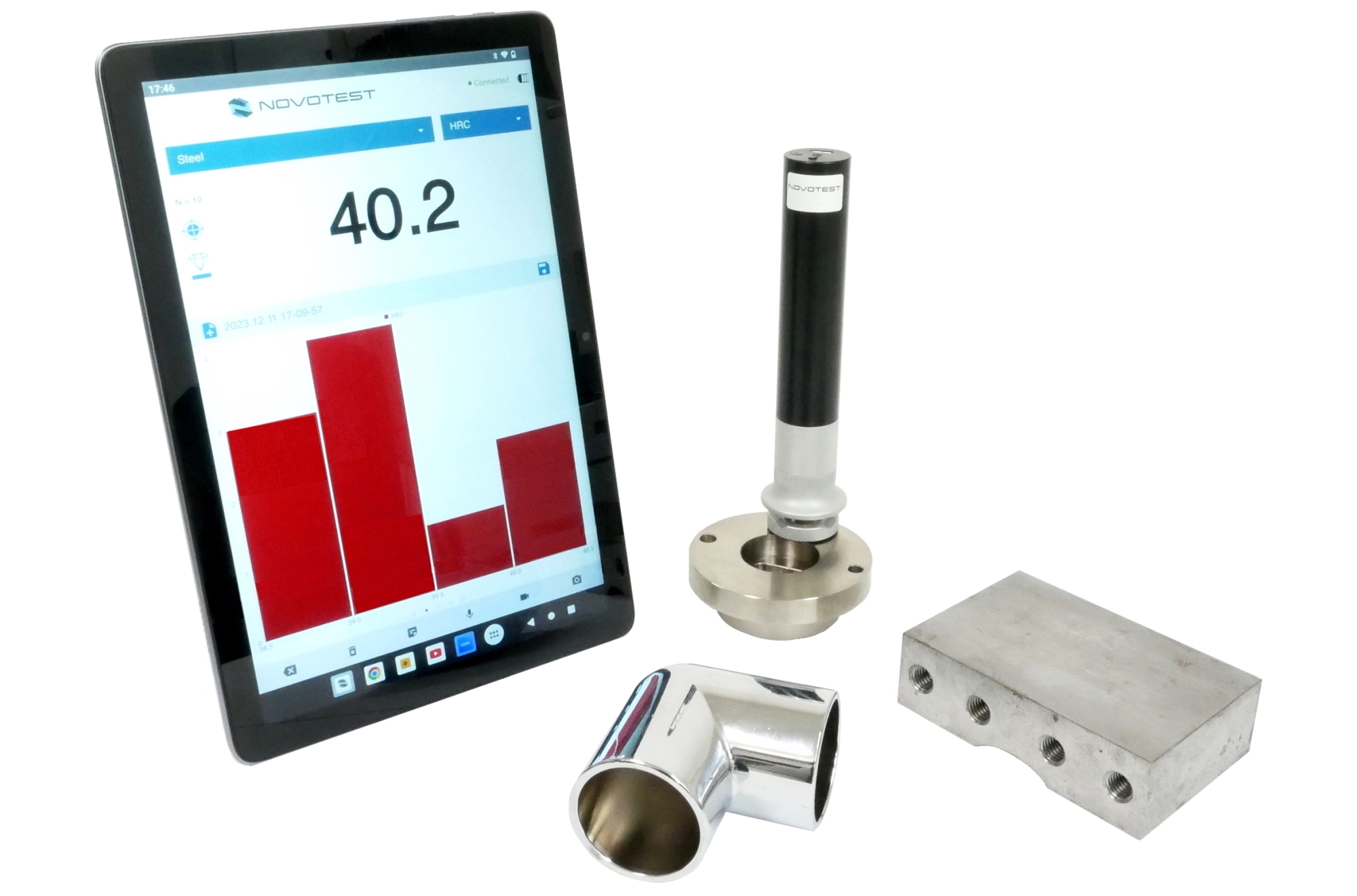 『Lab UCI 10N』は、Android搭載のスマートフォンやタブレットに直接つないで使用する、革新的なUCI式硬度計です。プローブのワイヤレス化(Bluetooth)により、未体験の快適さと作業効率を実現し、短時間でより多くの検査が可能です。