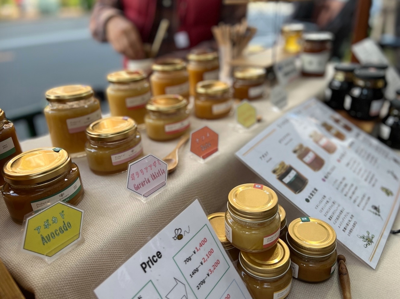 食材なども豊富です。近所のセレクト八百屋やさん「HACARI」さんや、「さいか」さんによる野菜マルシェ。自然のはちみつ屋「La-La-Be」さんのはちみつ、静岡の生産者さん「マルフク」さんの卵など盛りだくさん。
