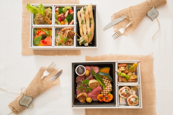 メインのお料理では結婚式でも人気の「しあわせ絆牛」を使用。黒毛和牛の特徴であるサシと脂質にくわえ、ホルスタインの赤身のうまさをかねそなえた、ハイブリッドな牛肉をフォアグラと組み合わせています。メイン含む前菜やバケット等8品をテイクアウトボックスでご用意。お誕生日や還暦祝いなど、家族で集まる特別な記念日のお祝いや、お土産にも最適のこちらのボックスは、ぜひお気に入りのお皿に盛りつけてお楽しみください。