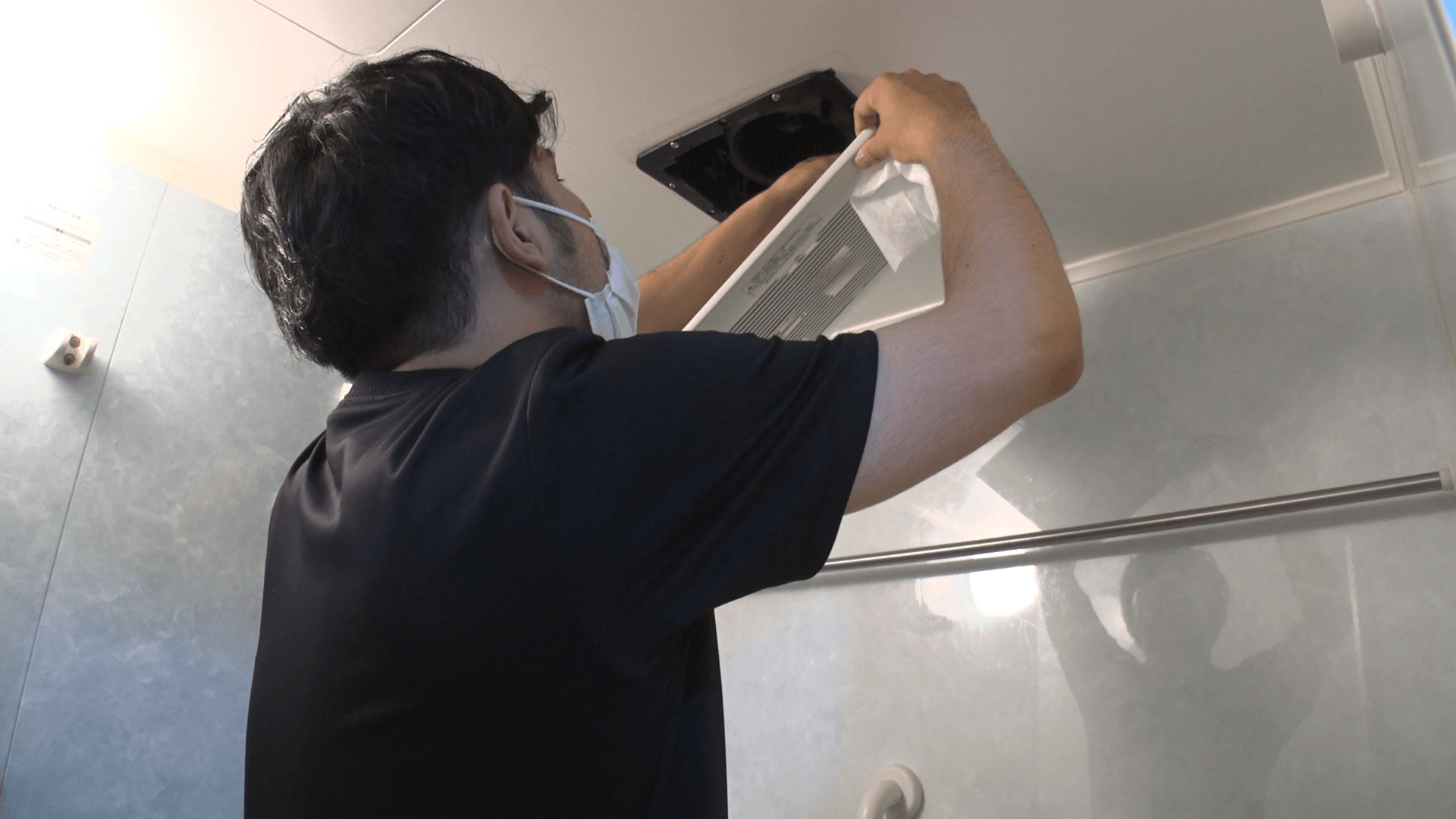 唐沢さんが訪れたのは、1年ほど前に夫を亡くして以来、一人暮らしのサポートとして家事代行を頼むようになった80代の常連さん。今回依頼したのは浴室の換気扇の掃除。なんでも気兼ねなく話せる唐沢さんの人柄に惚れ込み、大きな信頼を寄せています。