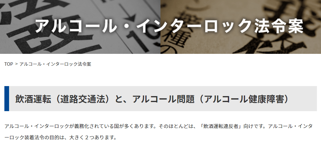 本サイトは、飲酒運転およびアルコール・インターロック装置に関するあらゆる情報を提供するサイトです。