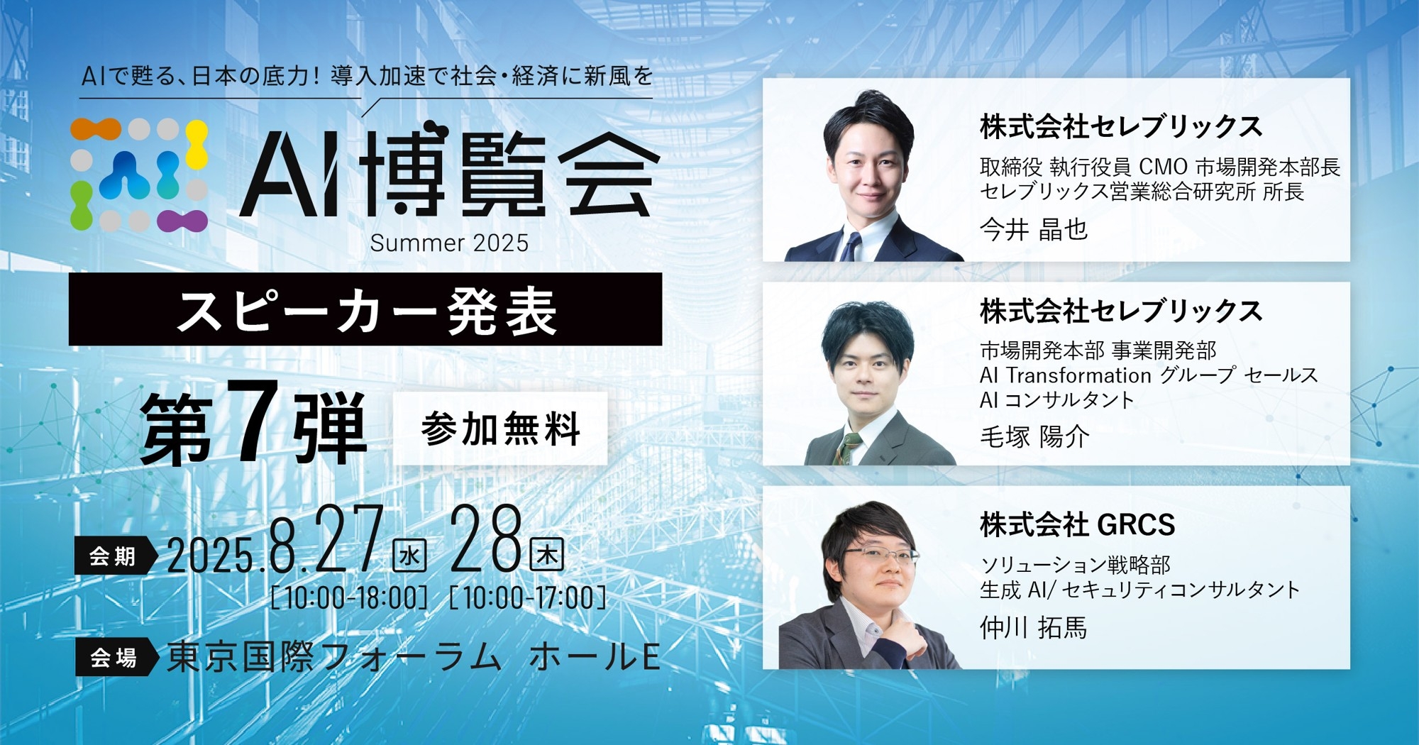【AI博覧会Summer2025】第7弾スピーカー3名を発表!活用事例から学ぶ、生成AI時代における営業戦略と生成AI活用の攻めと守りの最前線