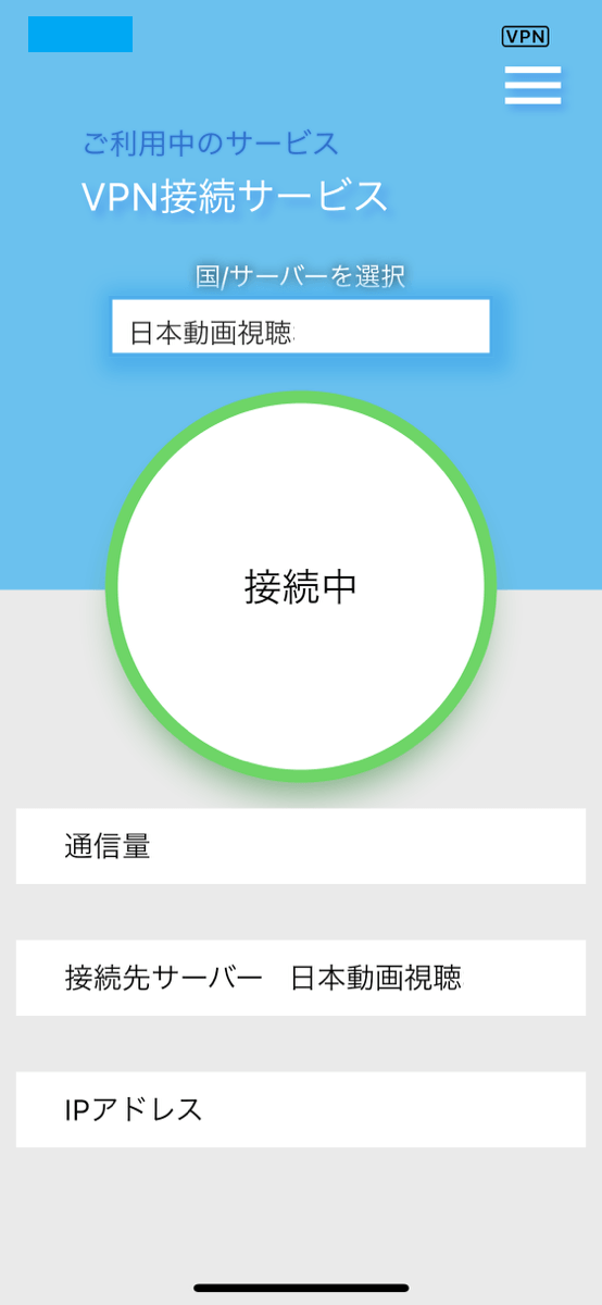 ワンタップでVPNの接続と切断の切り替えが可能。(アプリのログインにはIDとパスワードの入力が必要です。)難しい初期設定は一切なく、誰でも簡単に、直感的に利用できるアプリです。固定IPアドレスを付与するサービス「かんたん/せんぞく固定IPアドレス」では、現在利用している固定IPアドレスの確認もアプリ上からできます。また、マイページやよくある質問、お問い合わせフォームなどへもアプリから簡単にアクセスができます。