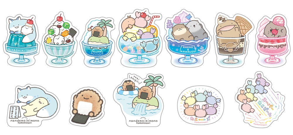 今回のよこみぞゆりの『なんでもいきもの』夏のひんやりフェアでは、キデイランド限定の「ひやしきつね」ぬいぐるみや先行販売の「やきおにぎり」ぬいぐるみ、マスコット、「カニーズ」の6色展開ぬいぐるみなど新商品が目白押しです。さらにお買い上げ特典もご用意いたしました。