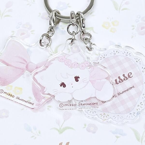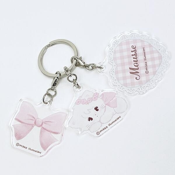 こちらはLil ala mode(リル アラモード)のひとり、子ねこのムースの3連アクリルキーホルダーです。