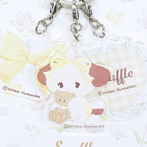 こちらは子いぬのスフレの3連アクリルキーホルダー。淡いイエローのカラーが最高にキュート!