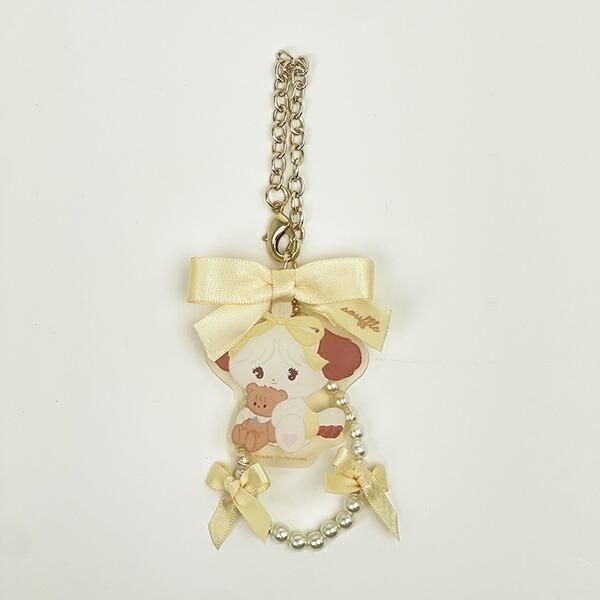 テディベアをぎゅっと抱きしめたポーズが、この微笑みがもう…たまらない可愛さ!このアクキーをバッグに付ければ、日常のふとした瞬間に癒やしをチャージできそうです。