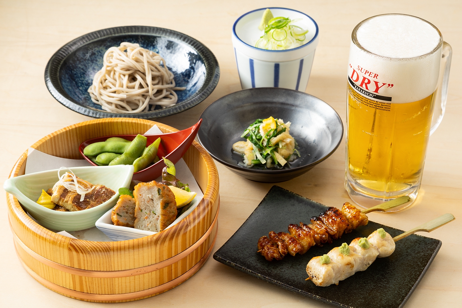 豚の角煮や、みつせ鶏の焼き鳥、当店自慢の蕎麦など、うまや長崎の魅力が詰まったセットです。