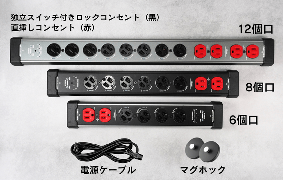 コンセントタイプ :独立スイッチ付きロックコンセント8口(黒)、