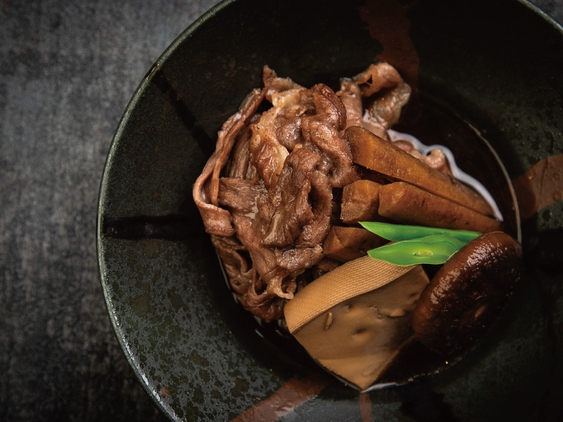 旨みたっぷりの博多和牛ロースと牛蒡を、九州産醤油で甘辛のしぐれ煮にしました。福岡県産『うちのたまご』に絡めてお召し上がりください。