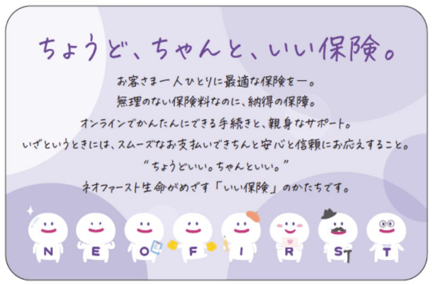本年8月に策定した商品ブランドコンセプトには、「お客さまに無理のない保険料で納得の保障を提供したい」「お客さまの時間を大切にしたオンライン手続きの簡便さと、不安に寄り添える親身なサポートを提供したい」「いざというときには、スムーズなお支払いでお客さまの安心と信頼に応えていきたい」という、「ネオde いりょう」を通してお客さまに感じていただきたい提供価値と、当社が実現したい「いい保険のかたち」への思いを込めています。