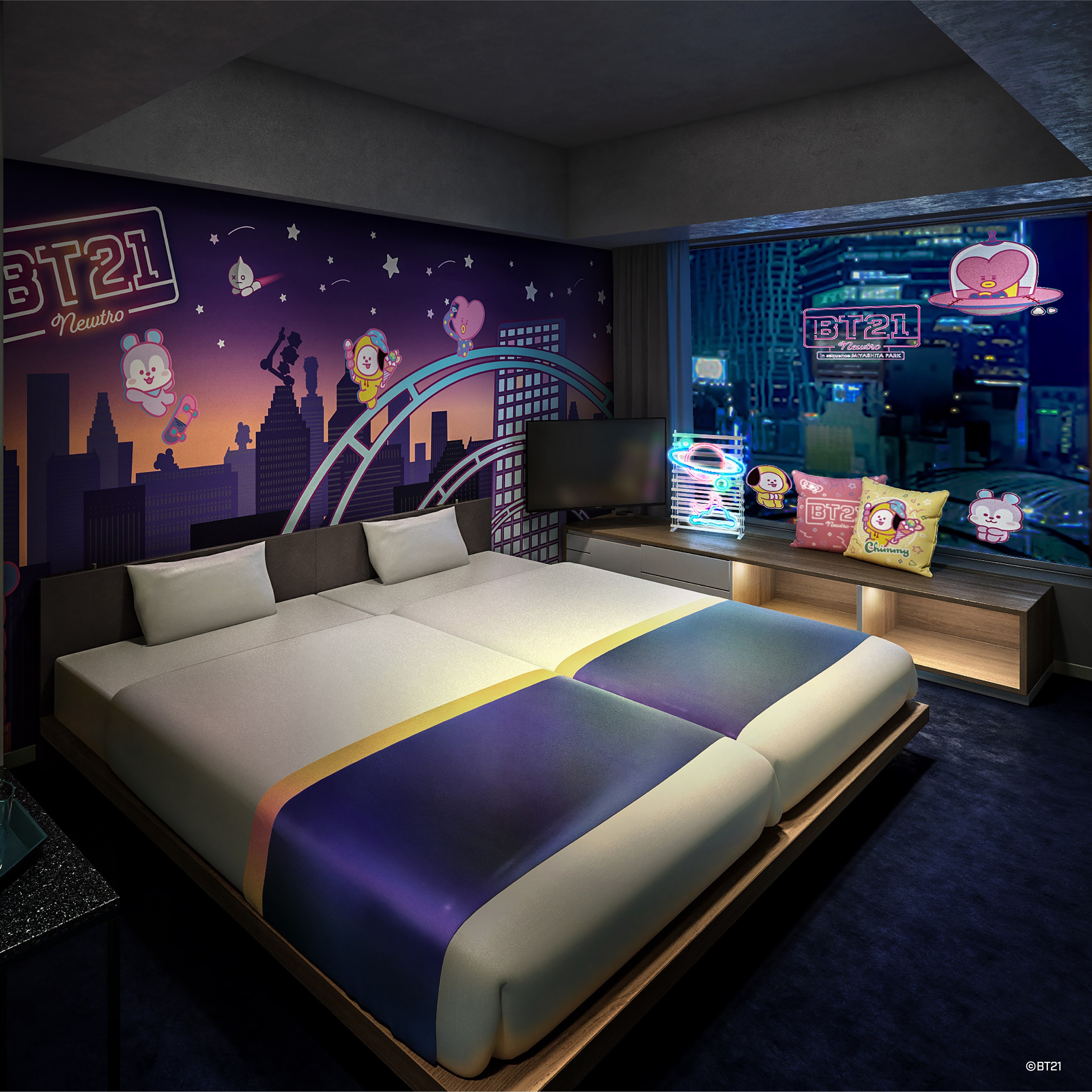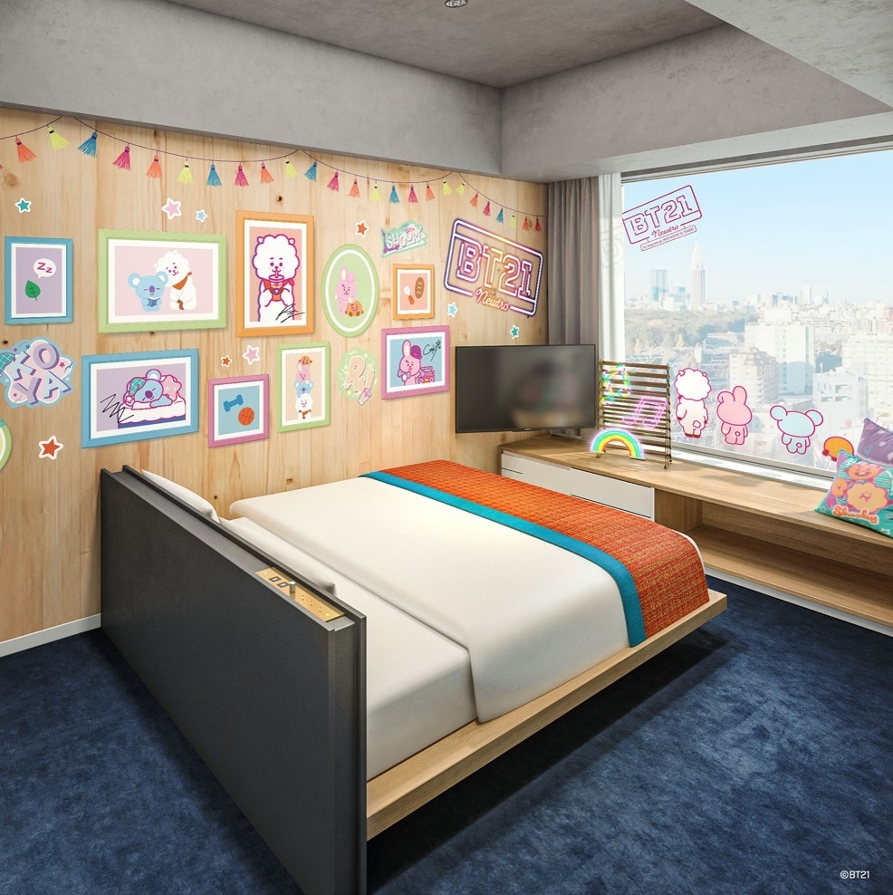 7月14日より「sequence MIYASHITA PARK」(三井不動産ホテルマネジメント運営)に、LINE FRIENDSのグローバル人気キャラクターブランド「BT21」(LINE FRIENDS Japan株式会社)とのコラボレーションルームが誕生。ワンフロアを「BT21」がジャック。新しくどこか懐かしい「ニュートロ」な世界観をテーマに、“サイバーポップ”“レトロポップ”の2種類のお部屋(全22室)を展開。特別な宿泊プランには、魅力的な特典が多数。コラボルームにご宿泊のお客様にお持ち帰りいただけるオリジナルアメニティをご用意するほか、宿泊客限定のグッズ販売やコラボドリンクなども販売予定となっています。