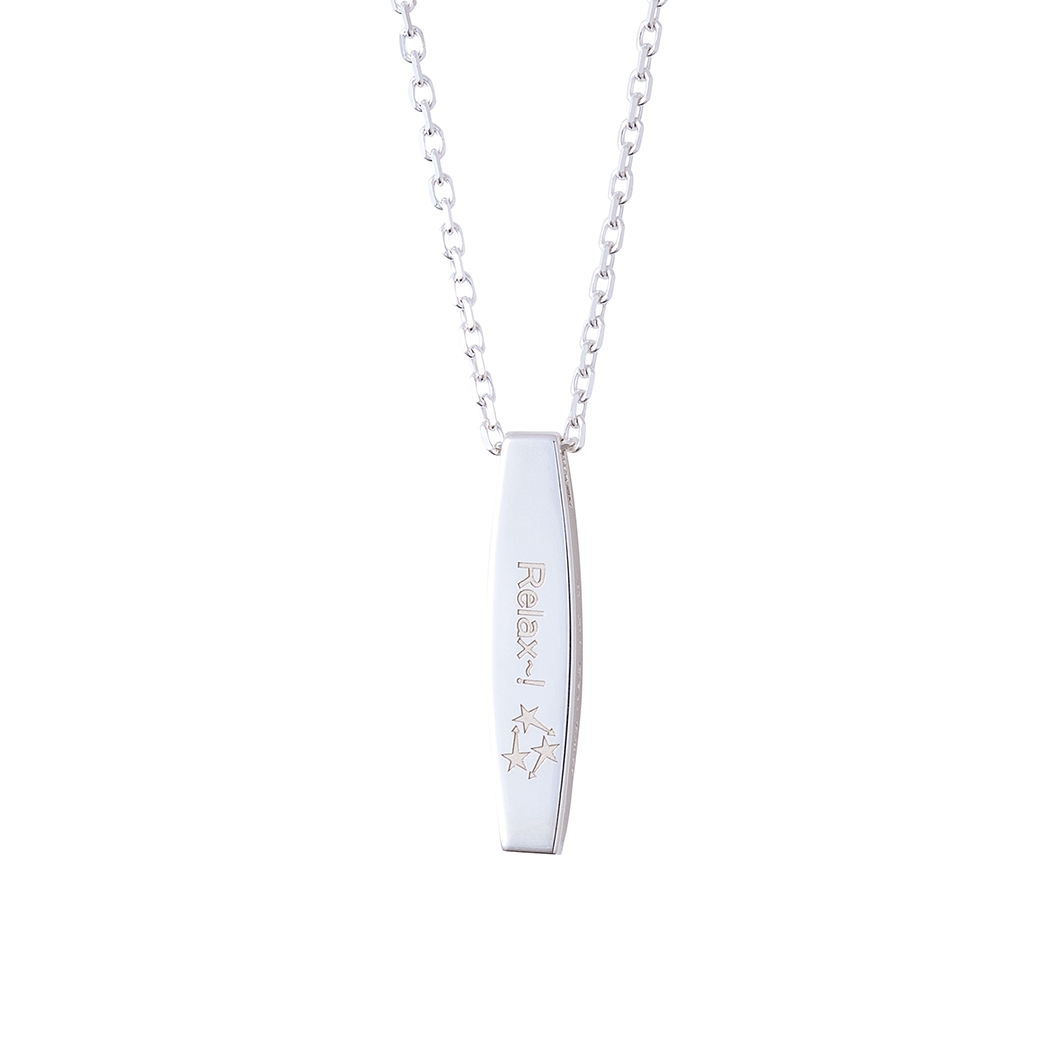 バータイプのトップの表面には、ドレッシングパフェのチームロゴから模様を取り込み3石のカラーストーンをセット。裏面には「Relax~!」の刻印を施しました。