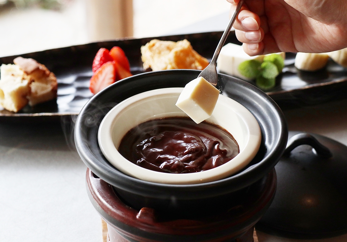 埼玉・ゆばカフェ紫水庵、 冬季限定の豆乳チョコフォンデュを提供開始