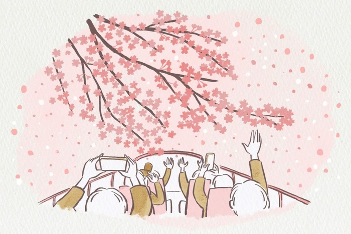 特徴1 オープンバスで桜スポットを走り抜ける