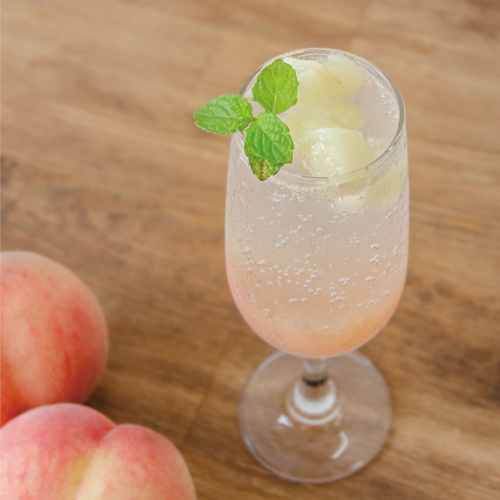 桃の果肉入り!桃の優しい甘さにソーダのしゅわっと感がたまらない!