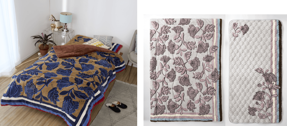 ELLEの膨大なデザインソースから、ソファカバー、ラグ、こたつ布団などのアイテムに落とし込んでも素敵になる大人かわいいボタニカルなデザインを選定しました。社内での反応も、年齢層幅広く評判が良かったので、一日も早くお客様にお届けして喜んでいただきたいと心から思いました。柄だけでなく、ELLEっぽいエスプリの効いた色合いも魅力です。暖房器具だけでは得られない心温まるような心地よい空間作りを新たに登場するELLE HOMEデザインのあったか素材のファブリックで楽しんでいただければ嬉しいです。
