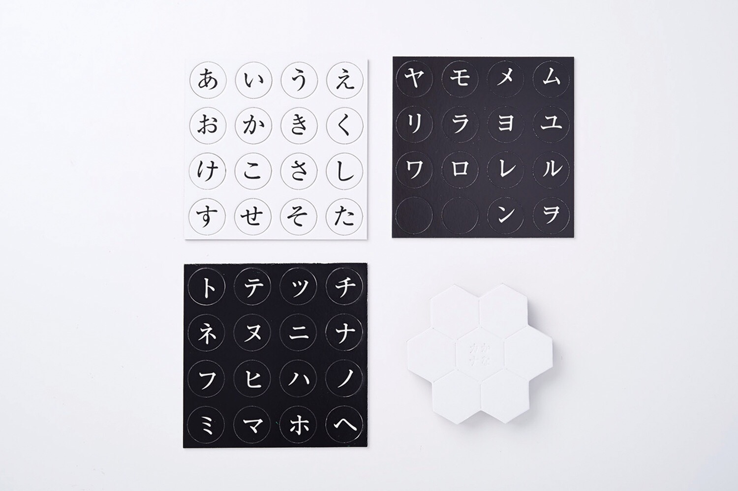 ひらがなとカタカナで出来たチップとタイルを使って遊ぶゲームで、ひらがなを覚える年齢から、お年寄りまでさまざまなシーンで好まれています。