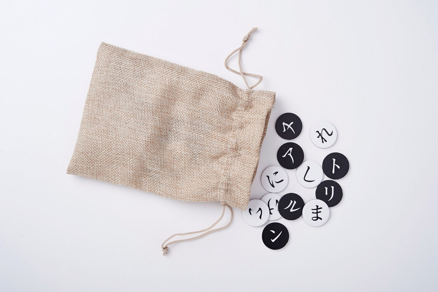 ひらがなとカタカナの書かれたシンプルなチップで遊ぶボードゲームなため、トランプのようにひとつで様々な遊びができます。