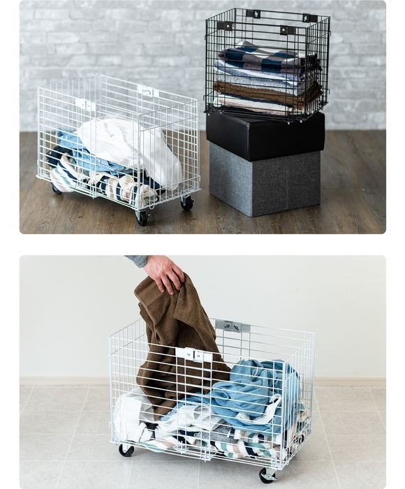 ランドリーバスケットとしての使用はもちろん、リビングでの収納からキッチン周りに置いてストッカーとしても収納しやすいシンプルな箱型の形状です。