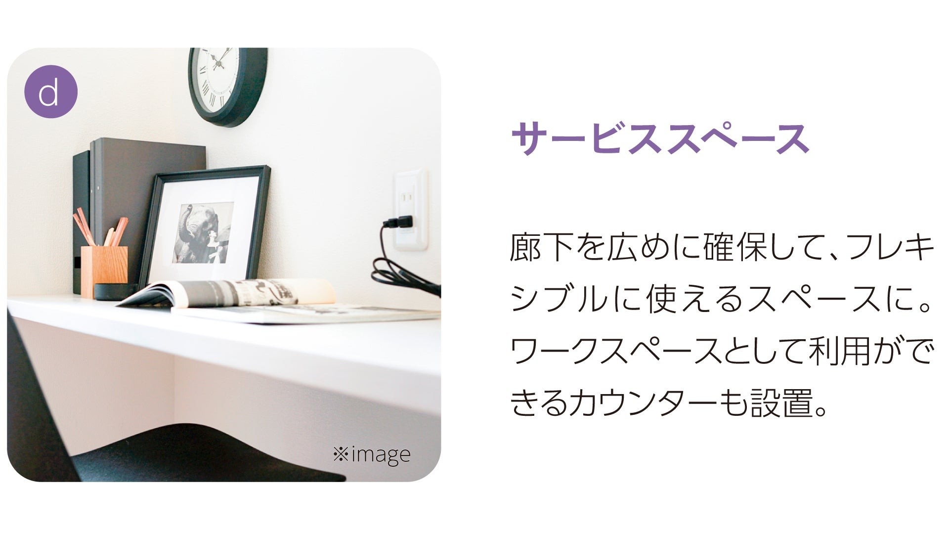 リビングイン洗面は、テレビを見ながらメイクができるので、朝の忙しい時間でも効率的な身支度を可能に。また、ファミリークロークにはお出かけ前にサッと身だしなみのチェックができる全身鏡を設置しました。アクセサリーや時計などの小物がしまえる引き出しもあり、一か所でトータルコーディネートが可能です。