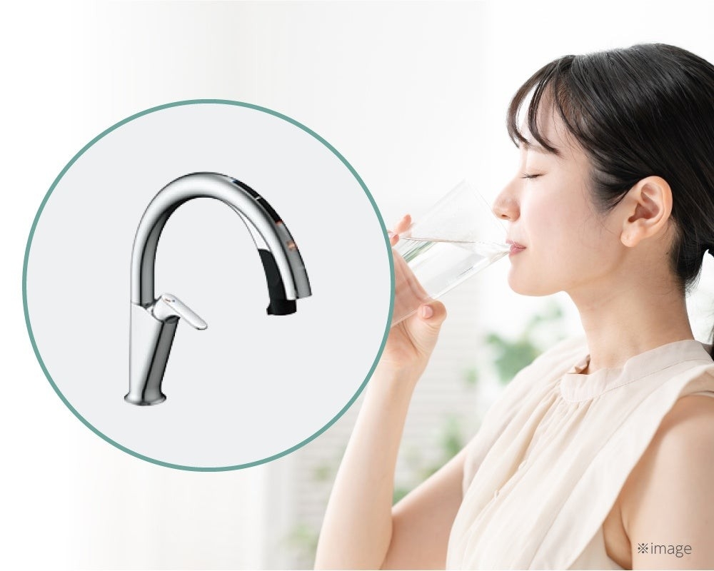 キッチンの浄水器付きタッチレス水栓は、毎日の料理や飲み水に清潔で美味しい水を提供し、体の内側から健康をサポートします。