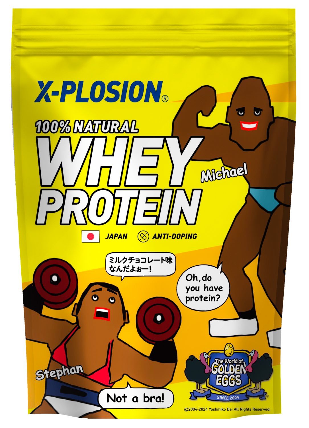 伝説のCGアニメ The World of GOLDEN EGGSと プロテインメーカー X-PLOSION(R)が初コラボ! 「ホエイプロテイン ミルクチョコレート味 1kg」が4月下旬発売