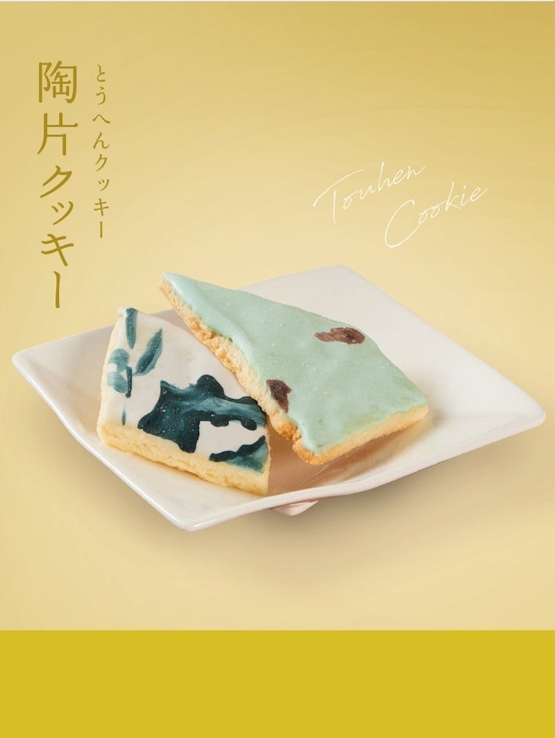 愛知県瀬戸市のギャラリーカフェでかつて販売されていた「陶片クッキー」を、KITONARI用にリニューアル。割れた陶器の形のクッキーに、一枚一枚手作業で模様を描きつけたアイシングクッキーです。陶磁器専門の美術館カフェにふさわしく、思わず写真を撮りたくなるおもしろさです。