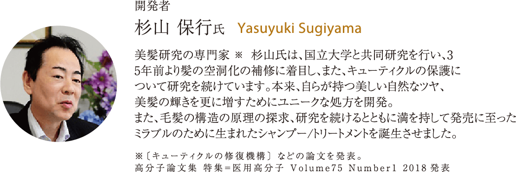 「ミラブルのために生まれたシャンプー」&「ミラブルのために生まれたトリートメント」が髪の空洞化を補修。髪の表面の凸凹を補修し、自然なツヤ髪に。