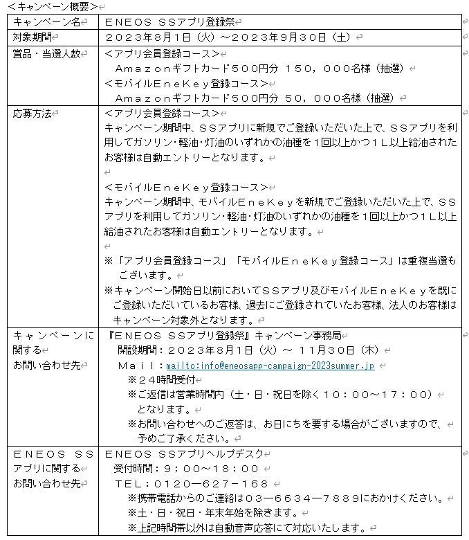 「ENEOS SSアプリ登録祭」を全国で開催します! | NEWSCAST