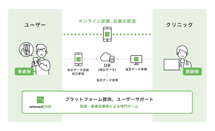 テレメディーズとポートが共同開発した「テレメディーズ® BP(2019年度グッドデザイン賞受賞)」は、自宅や職場にいながらにしてオンライン診療、降圧薬などの薬剤の処方を受け、郵送で受け取るまでの一連の流れを支援するパッケージサービスです。その一部として、総合内科および内科領域別専門医、医療スタッフによる、高血圧や生活習慣病などの内科疾患に関する医療相談も利用することができます。