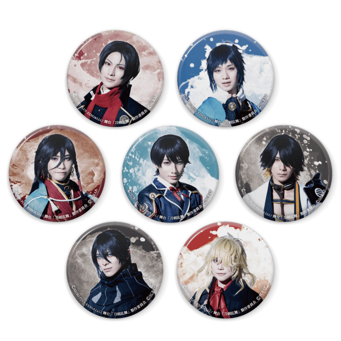 また、「舞台『刀剣乱舞』心伝 つけたり奇譚の走馬灯」に登場する刀剣男士の缶バッジ(全7種)も販売。こちらもお見逃しなく。