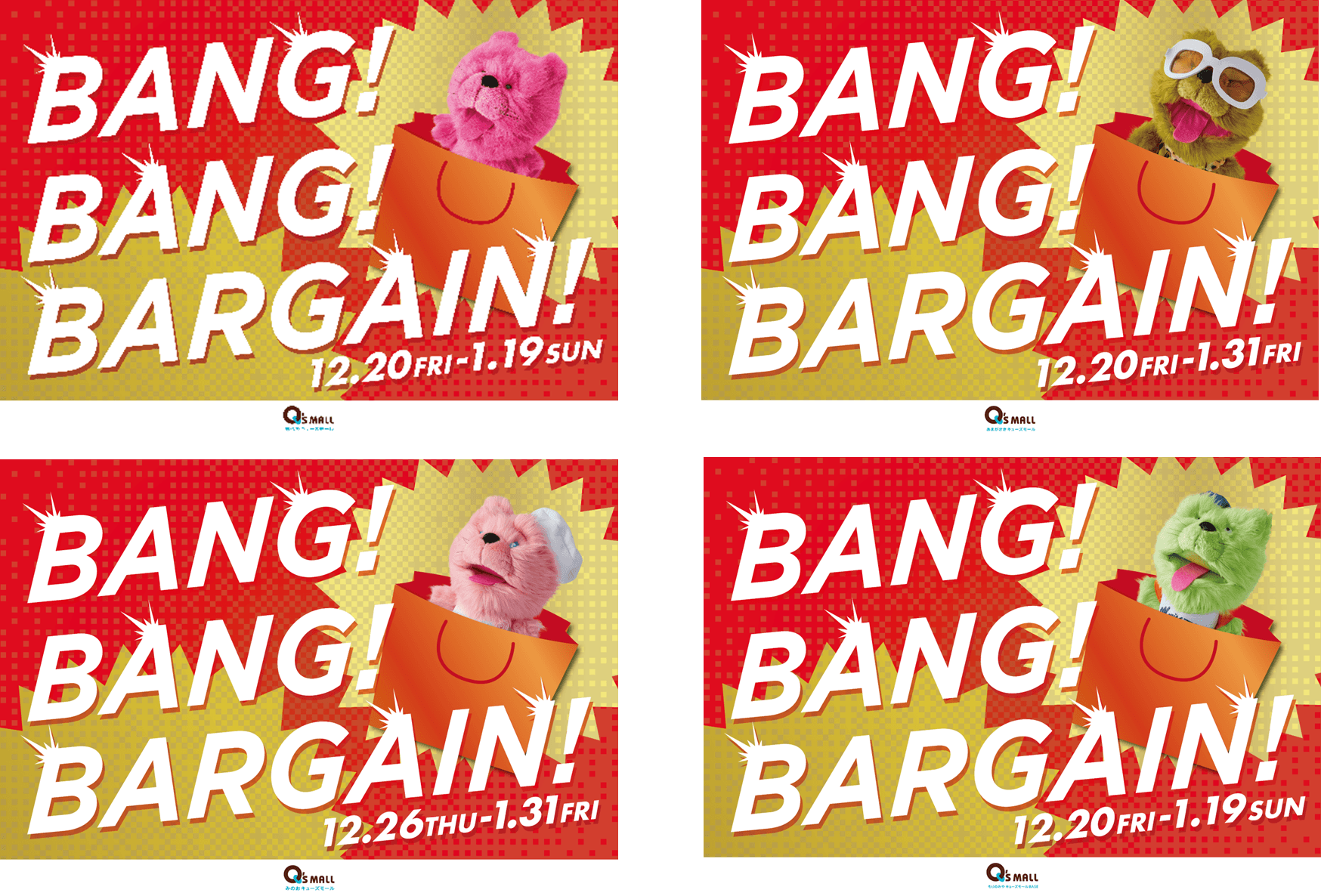 「BANG!BANG!BARGAIN!!」は、キューズモール全4施設が日頃のご愛顧に感謝の気持ちを込め、様々な商品・サービスを通常価格よりお得にお買い物をお楽しみいただける冬バーゲンです。