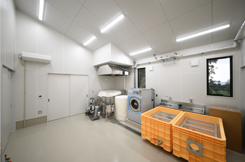 2024年10月に地鎮祭を執り行い、同年12月より基礎工事に着手いたしました。厳しい冬の寒さを乗り越えながら、職人の皆さまの高度な技術と細心の注意のもと、約4か月にわたる工事が着実に進行し、無事完了を迎えることができました。その後、醸造に必要な最新設備・機材の搬入を滞りなく行い、2025年3月31日に「天郷醸造所」が完成いたしました。