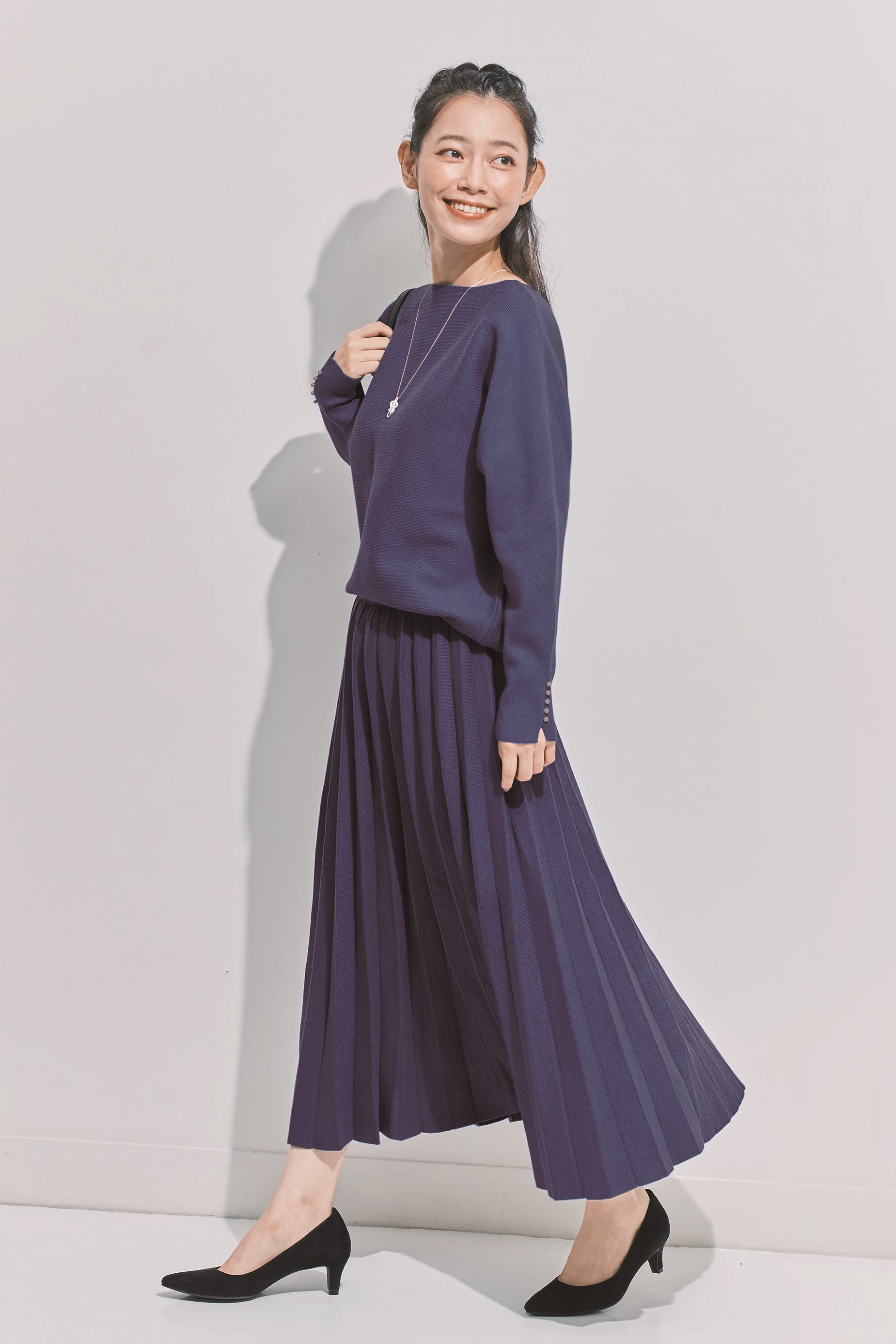 軽さが特長のスポンディッシュ生地を使用した、カジュアルすぎず大人っぽく着られるトップスや、首元がスッキリ見えるニットベストとラウンドネックブラウスのセットアイテムなど、バリエーション豊富にラインナップいたします。