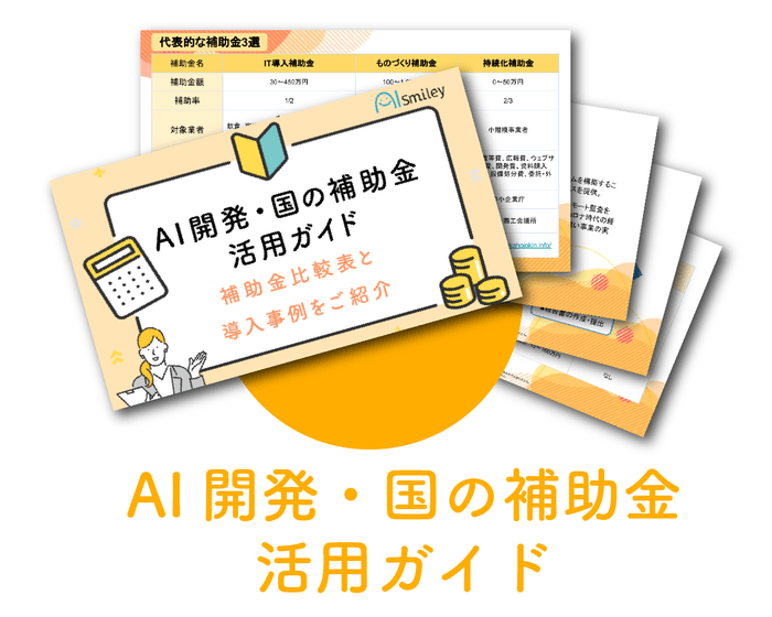 お問い合わせ完了後にご登録されたEメールにAIsmileyの担当から「AI開発・国の補助金活用ガイド」 (PDF)をメールにて送付させていただきます。