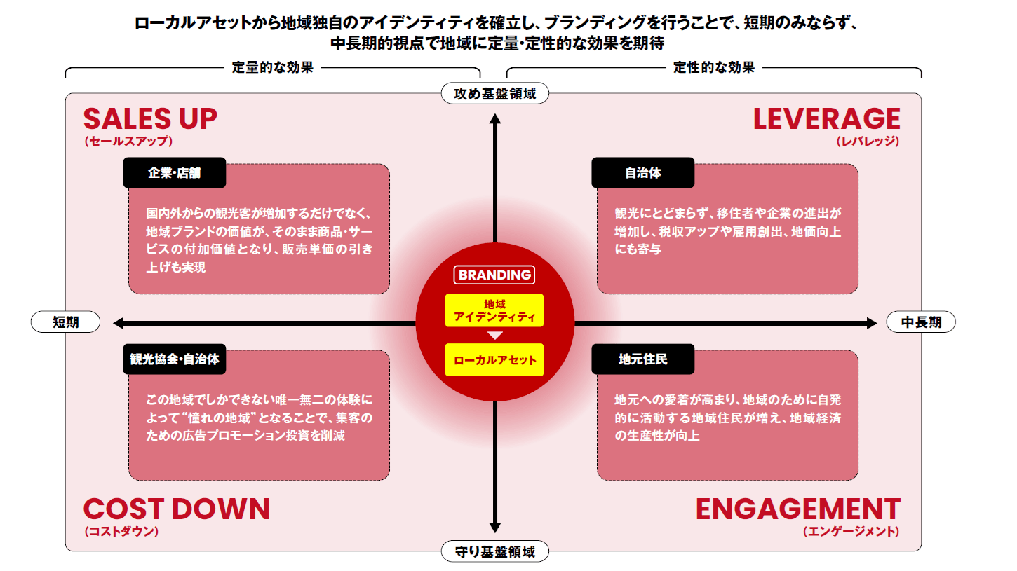 これらを単なる部分支援ではなく、全体として接続し、エリア全体のブランド価値を継続的に高めることで、地域は短期的な成果だけでなく、中長期的な視点での経済的自立・自走が可能となり、地域経済が最適に潤う状態を目指します。