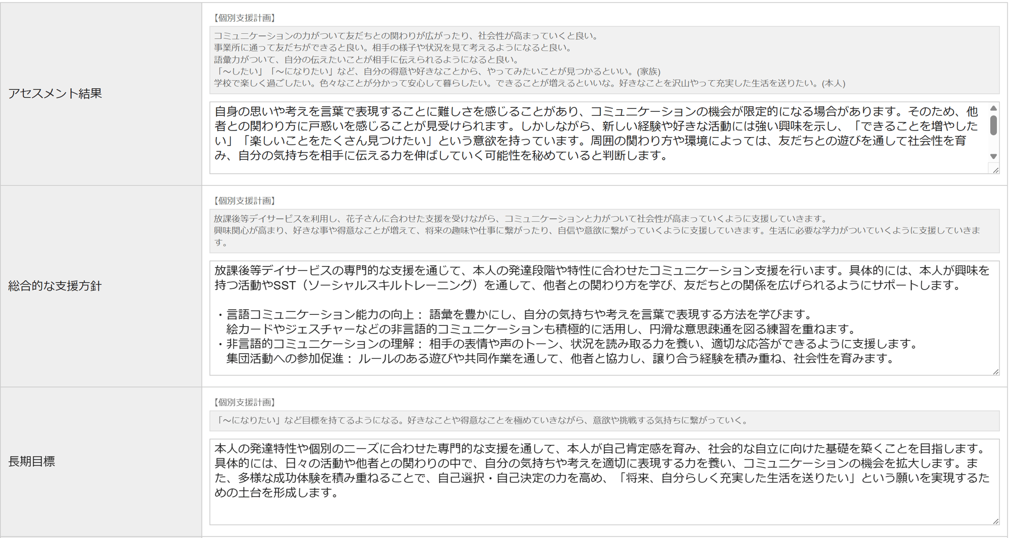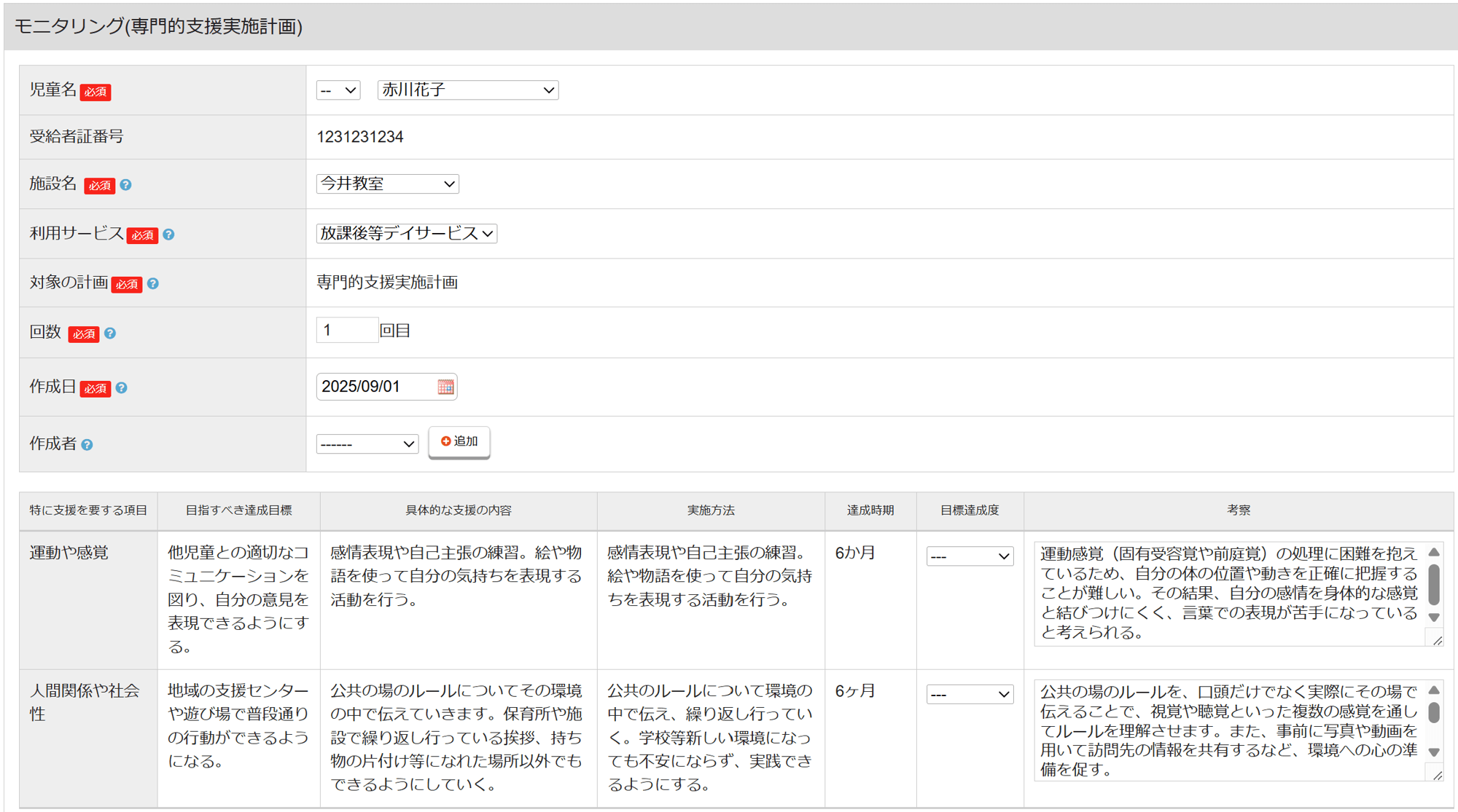 ▼個別支援計画の内容を確認しながら専門的支援実施計画書の作成が可能