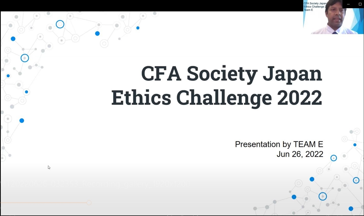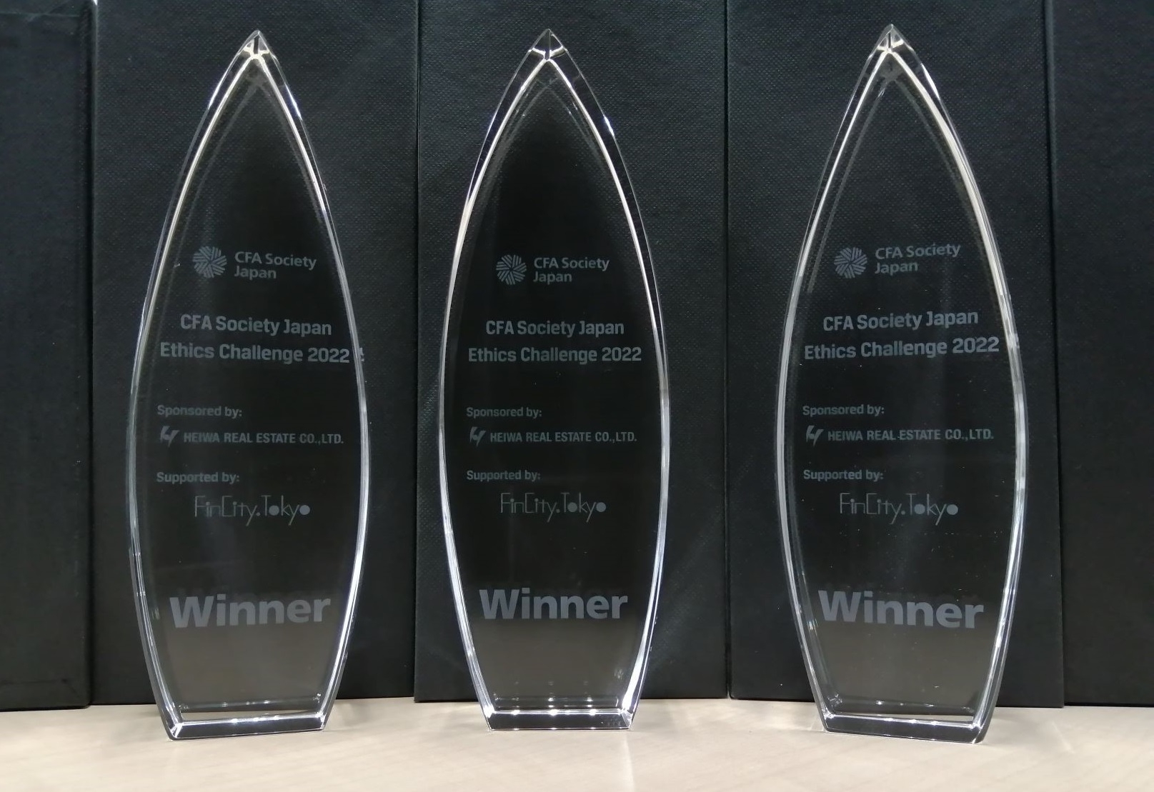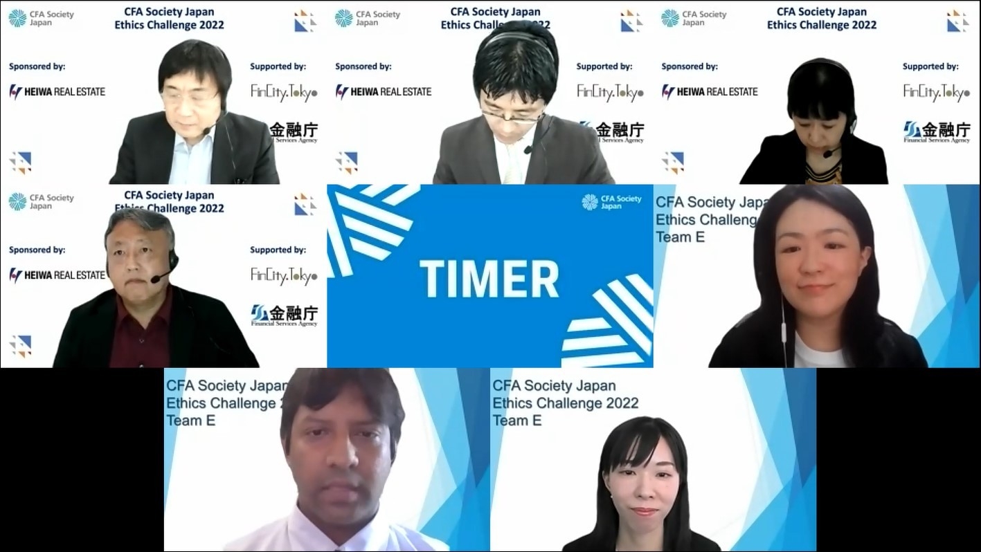 エシックス・チャレンジ(Ethics Challenge)は将来の活躍が期待される学生向けに開催されるイベントで、金融業界の中でも重要性が高まっている資産運用業界の様々なセクションにおいて倫理観に基づいて行動できるプロフェッショナルの育成を目指しています。大学(院)生で構成されるチームに、資産運用における倫理上のジレンマを含んだケースが与えられ、そのジレンマを発見し、各チームで議論の上、審判員にプレゼンテーションを行ない、厳正な審査の末に優勝チームが決定されます。2018年からCFA協会(CFA Institute)アジア・太平洋地域(APAC)で開始され、昨年2021年は国内で初めての大会を開催しました。昨年の大会で優勝した筑波大学チームは進出したAPACの大会でも、倫理に関する豊富な知識と高い分析力が高く評価された結果、準優勝となるなど健闘しました。