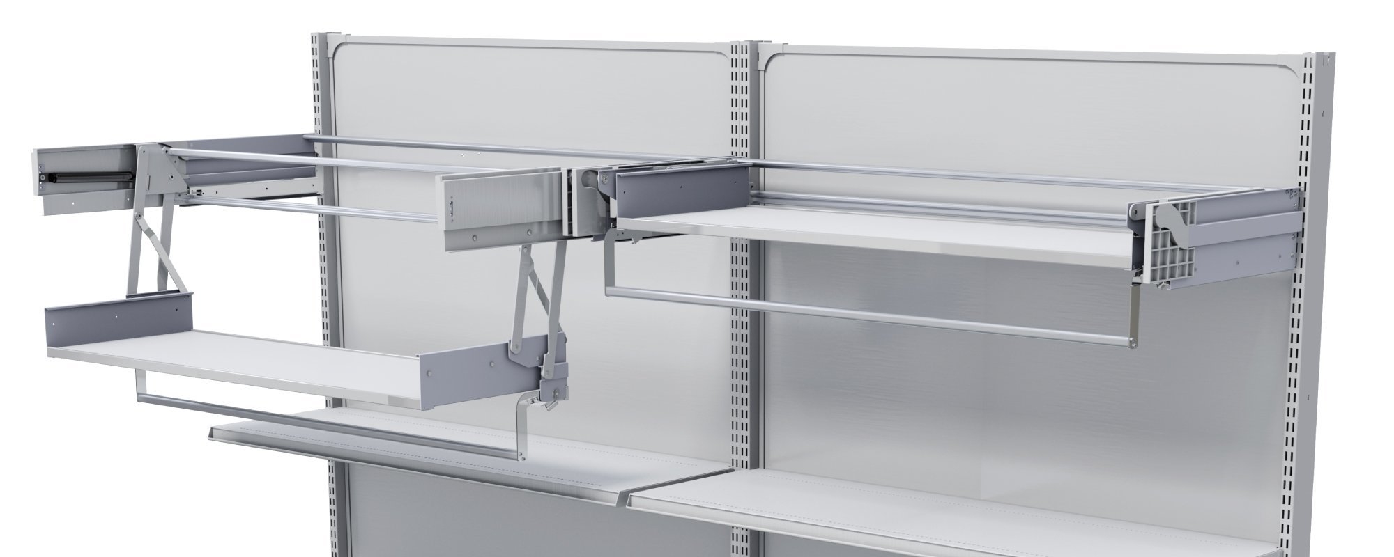 店舗業務省力化に貢献する非電力昇降収納の新製品