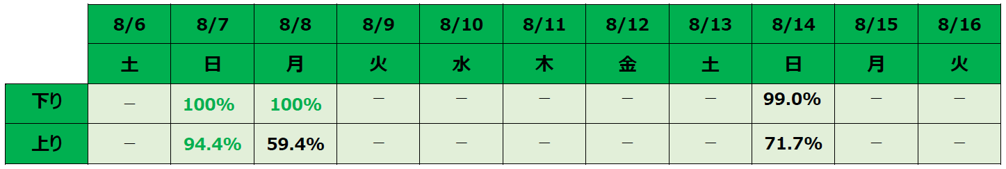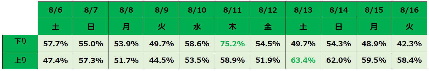 2022年度夏季繁忙期11日間(2022年8月6日(土)~8月16日(火))のご予約状況を取りまとめましたので、ご報告いたします。