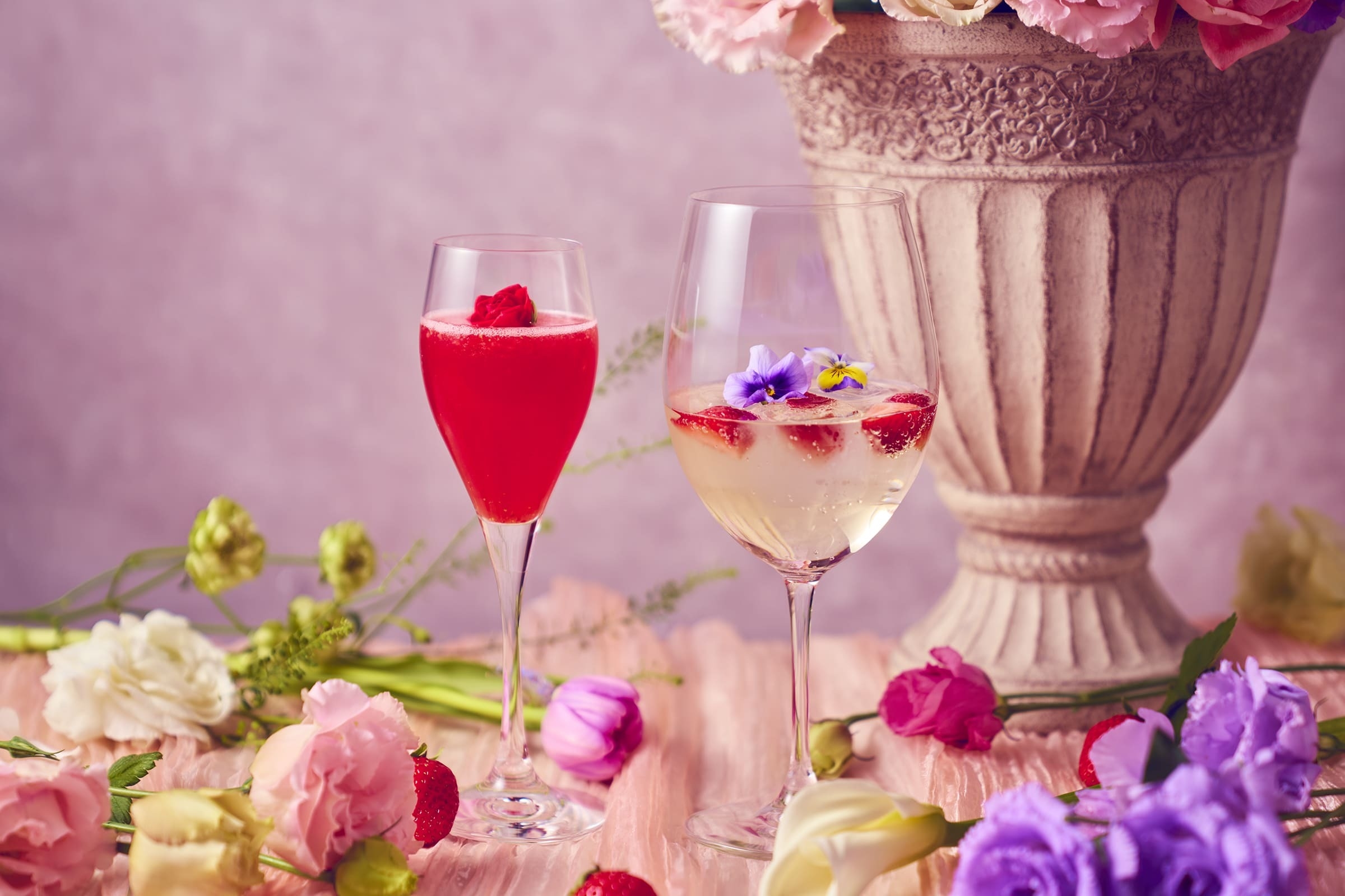 瑞々しいいちごとバラ・ラベンダーなど色とりどりのお花が織りなす、春の香りを詰め込んだアフタヌーンティー。いちごの甘酸っぱいフレッシュな味わいを最大限に引き立てるプティ・ガトー12種/スコーン/セイボリー3種をご用意しました。春色のカクテルや、いちご風味の生搾りモンブランは、オプションでご用意し、さらに贅沢なひとときを演出します。いちごの甘さと花々の彩りに包まれ、至福のひとときをお過ごしください。