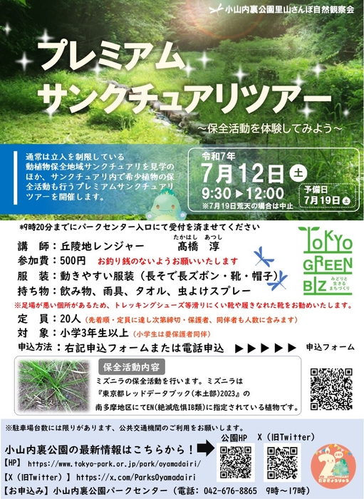 希少植物の保全活動を体験できる「プレミアムサンクチュアリツアー」を開催【7月12日(土) ・小山内裏公園】
