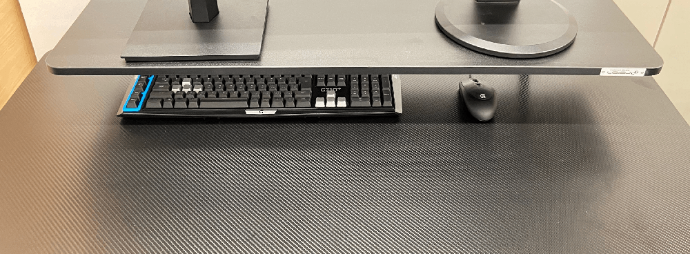 また、モニタースタンド下にスペースができるのでマウスやキーボードなどを置く事ができます。スペースを取るモニターを台上に置くことでデスクを広く使うことができ、作業スペースを広く確保することができます。
