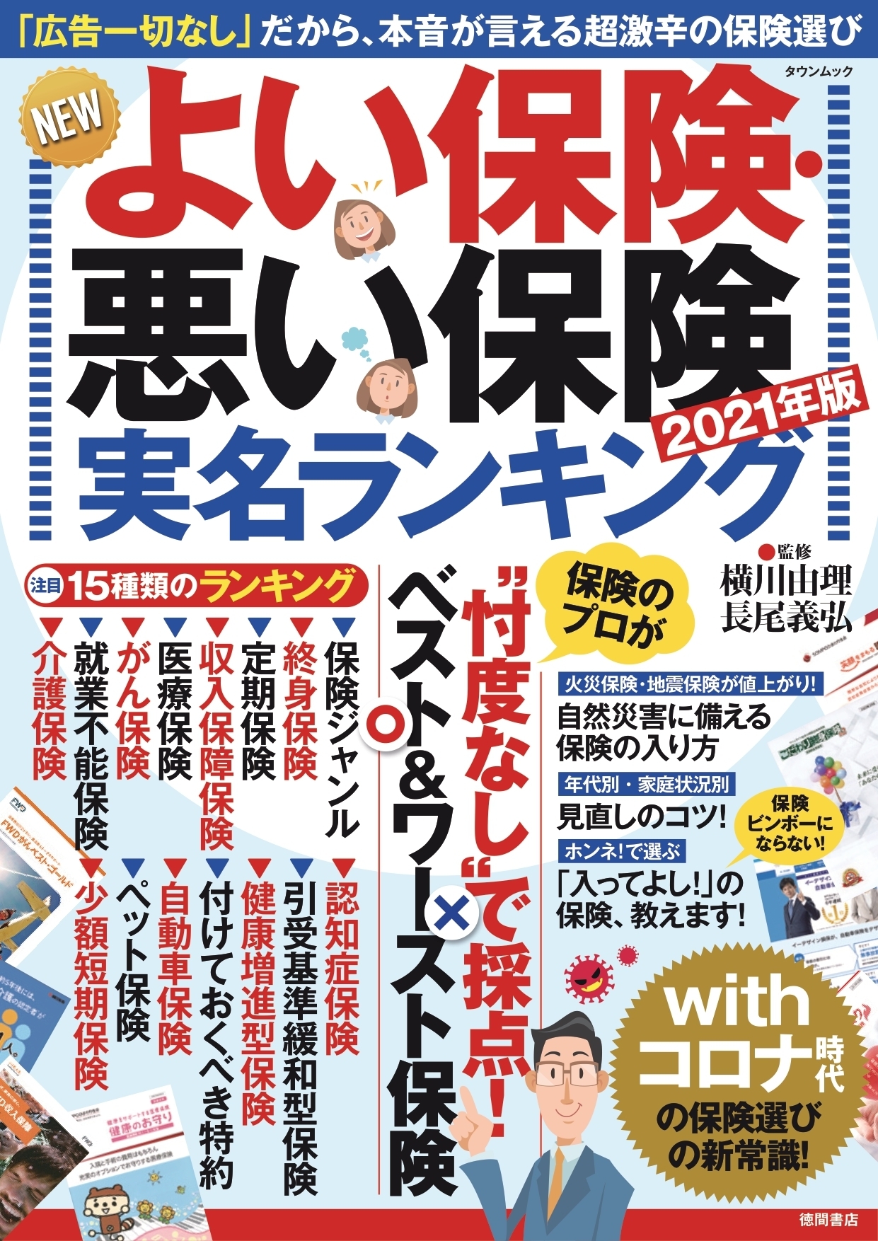 保険商品をジャンル別に実名でランキングしたムック、『NEWよい保険・悪い保険 2021年版』が、徳間書店より2020年12月に発売しました。