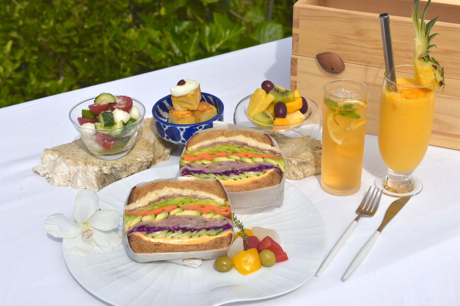 ビーチまでテイクアウトできる「ビーチブレックファスト」を用意します。提供するのは、沖縄に親しみのある食材を使用サンドイッチです。また、施設内にはビーチの他にも、目の前に海が広がる「ビーチプール」や海辺で本と過ごせる「BOOKS&CAFE」など、静かで穏やかな時間を過ごせる場所が点在しています。自分のお気に入りの場所で、朝の爽やかな潮風と優しい波音を聞きながら、腸内環境を整える朝食です。