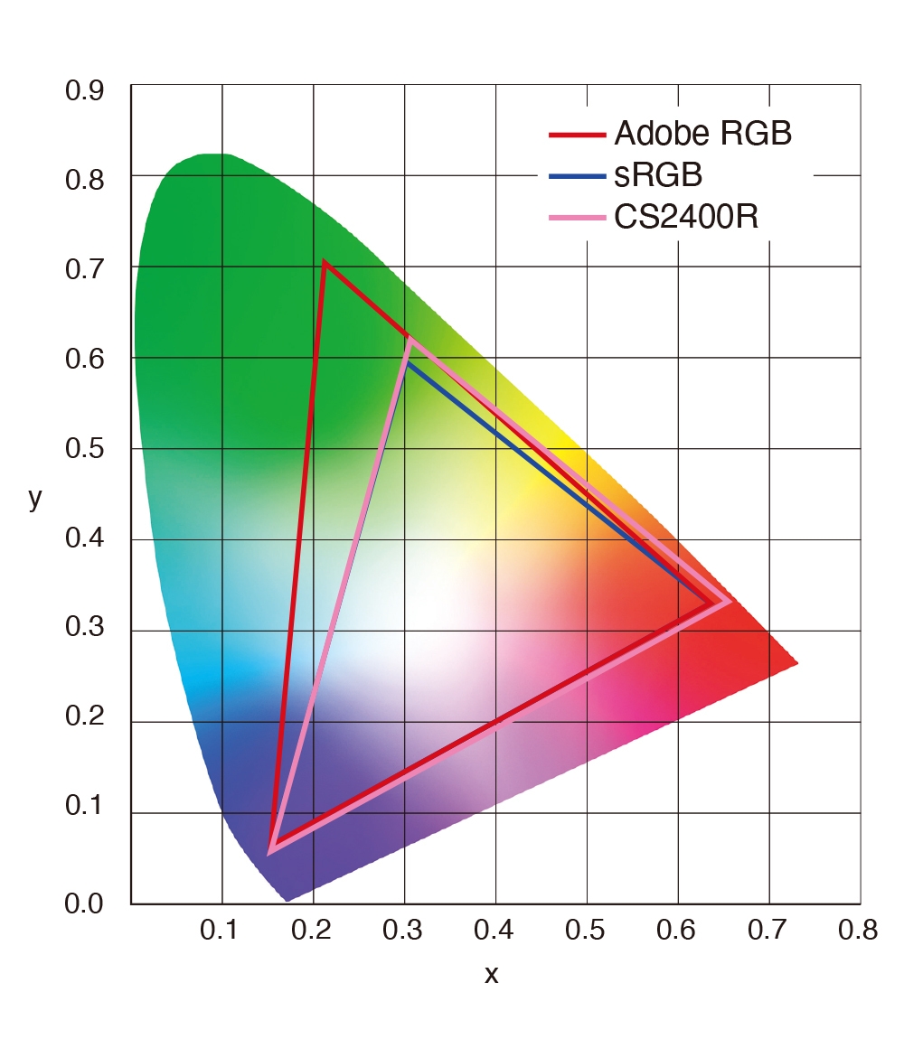 ColorEdge CS2400R(以下 CS2400R)は、現行のColorEdge CS2410(以下 CS2410)の後継機種で、24.1型WUXGA(1920×1200)解像度のカラーマネージメント液晶モニターです。デジタル写真やイラスト制作を楽しむ方や、Web制作を行う方をターゲットとしたsRGB色域を再現できるColorEdgeシリーズのベーシックモデルです。