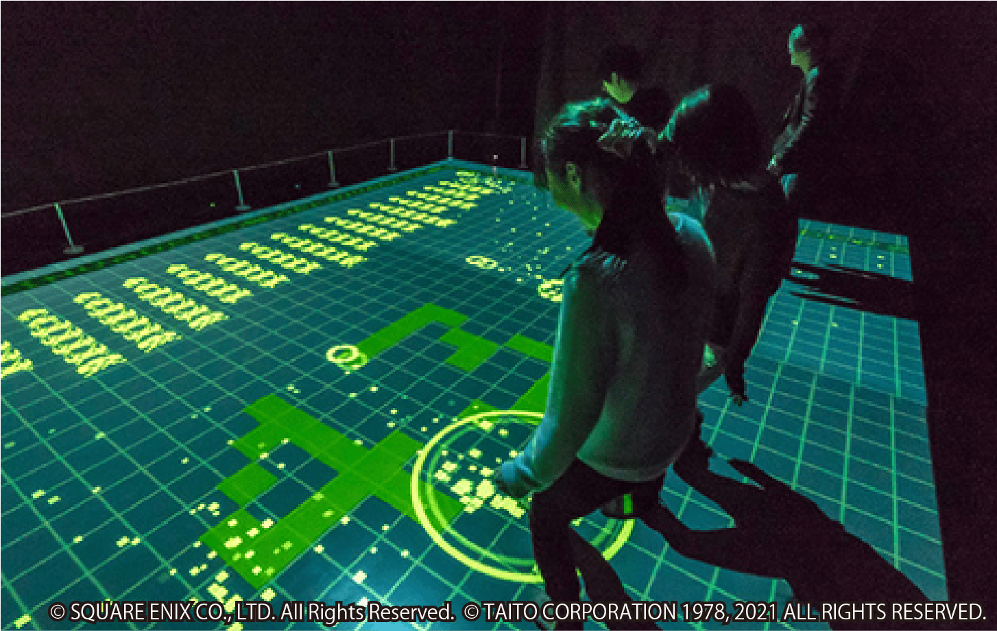 バーチャルフィールド上のインベーダーの大群を迎え撃て!床面に投影されたボールを蹴って弾いてプレイする、新感覚スペースインベーダーゲーム。みんなで協力してインベーダーの侵略から世界を守ろう!